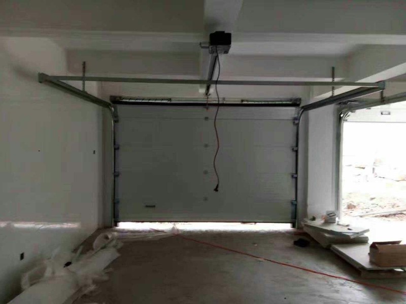 一般来说,车库门总的分为两种,一种是价廉物美的铝合金卷帘门,这种车库门不会占用太多的空间,只需要一点点的安装空间就能够满足使用要求。另一种是本次项目所安装的厚度为40mm的保温型车库门,这种车库门更加牢固,有一定的保温性,但是需要占用一定的空间,所以一般较小的场所不建议安装,像这样的别墅,因为本身空间很大,所以可以安装保温车库门。