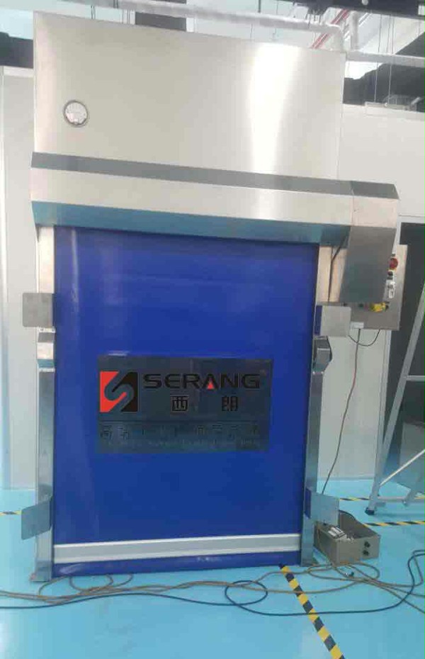 就像这次的工程一样,整个区域非常洁净、机器整体都是SUS304不锈钢的,所以针对配套的快速卷门,也必须要和机器一样,使用完全相同的SUS304不锈钢,以达到要求。