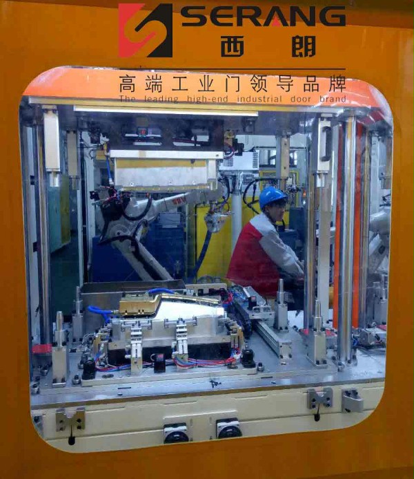 快速卷帘门不仅能够使用在厂房的各个车间,同时也可以和很多设备联动操作,就像这次安装在汽车零配件焊接操作间一样。