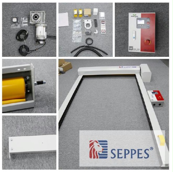 首先开箱检查配件是否齐全(每套门有5个件,其中包含控制箱1套、电机及编码器1套、门头包厢1套、轨道1套、光电及五金配件1套)