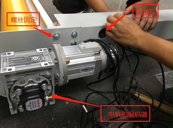 轨道用螺丝和门头部分固定(轨道分左右)目前西朗快速门均采用走内线的结构,有穿线孔的轨道和电机放在同一侧
