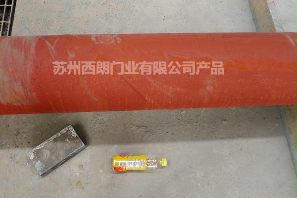 西朗大型钢制卷帘门采用加厚型螺旋焊接8寸管;下图为8寸卷帘门大梁管: