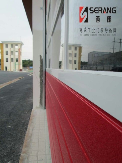 西朗工业门公司为上海消防大队生产、安装的红色消防提升门,外观漂亮,还具有三行透明视窗,便于观察室内外情况,电机、控制箱全部采用进口品牌,使用寿命长,安全、方便。