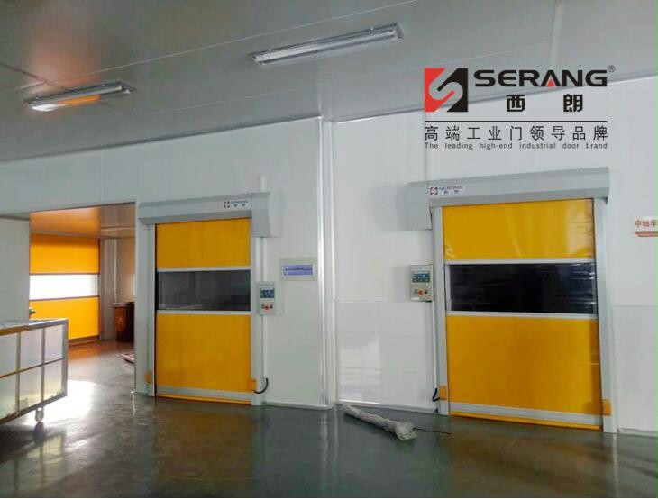 西朗门业是一家专业生产、销售、安装和维护各种工业门的公司,此次安装在洁净车间内的黄色快速卷帘门,门帘选用黄色,有防蚊虫的效果。