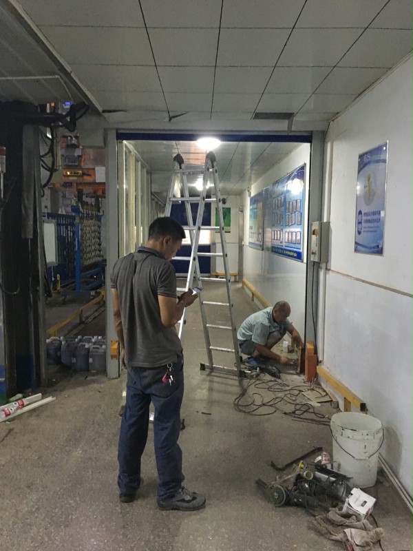 虽然三伏天的不断持续,车间内需要降温来保证生产人员的工作效率,而且在一些劳动密集型的行业,比如这次安装互锁快速门的镀锌公司,整个车间有很多人员在工作,势必要保证车间内的温度,而且由于镀锌车间内对洁净度比较高,所以需要安装2樘快速门,一樘在室外,一樘在室内,形成互锁模式,使室外和室内隔绝,有效保证车间洁净度。