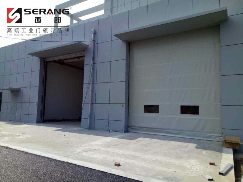 本次项目安装抗风快速堆积门的地方为厂房外立面门,需要防风、防雨,因为有叉车进行,所以需要频繁进出,门帘颜色使用灰色门帘,与大楼外立面颜色相协调,显得整齐、美观。
