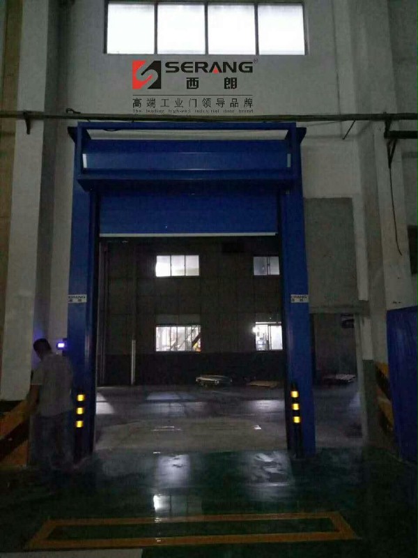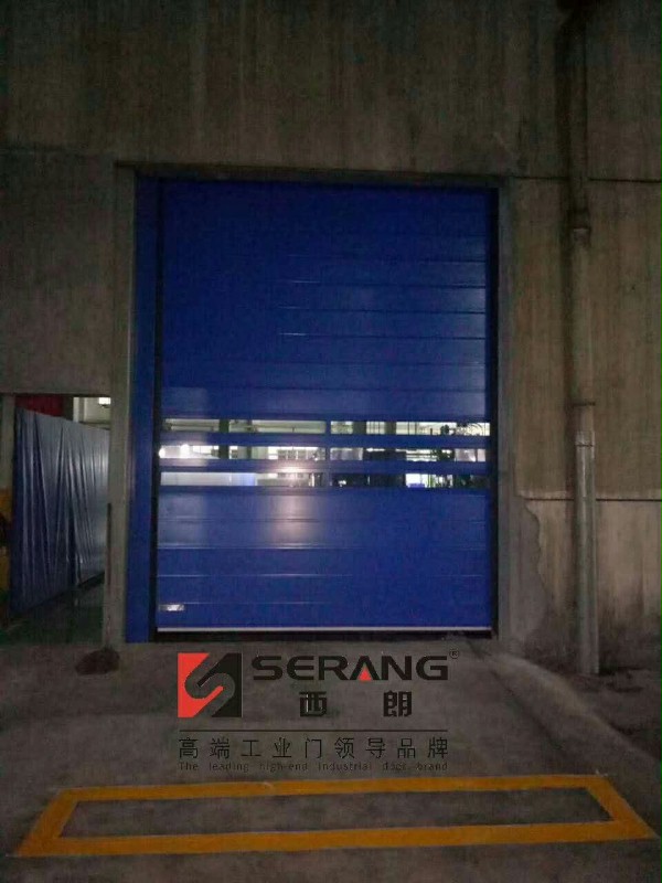 这次宁波某机械公司所安装的硬质快速门就是用在叉车频繁进出的场所,因为需要达到用户保温、抗风、频繁运行的要求,所以采用硬质快速门的方案,因用户需要美观的特别要求,要达到和厂房整体协调的特殊要求,门板采用用户指定的蓝色。