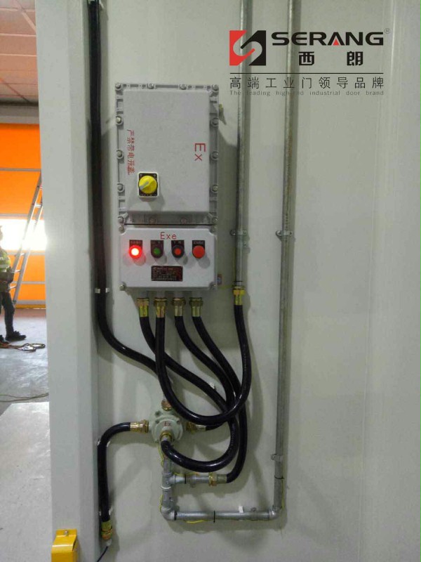 防爆柔性快速卷门的防爆控制箱及走线全部按照防爆要求来操作,走线整齐、美观,需要转接的地方按照规定使用转接接头过渡,每个配件都符合国家防爆要求,使用户用的放心。
