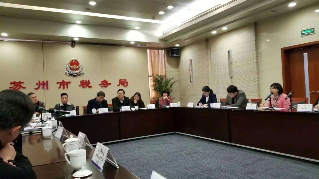 企业座谈会在位于苏州市姑苏区干将西路535号的国家税务总局苏州市税务局的会议室举行,国家税务总局调研组先介绍了国家政策层面关于减税降费的具体措施与规定,随后有针对性的与各位企业代表进行交流,西朗门业(苏州)有限公司作为代表企业,第一个发言,就企业发展、经营状况、缴税情况以及享受到的减税降费普惠政策向国税调研员进行汇报,同时还就增值税率、个税等方面在实际操作中遇到的问题,提出了建议。接着,另外14家企业代表也一一发言。国税各相关负责人认真听取、互动交流、实时记录,并做了回复与总结。