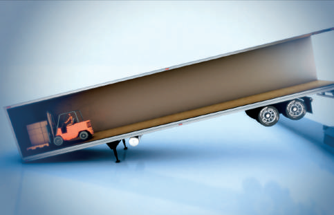 双轮拖车经常在装卸货区域留下以落地支架固定的车厢后驶离。当满载的叉车经过装卸平台进入车厢时,其冲击力可能引起落地支架的塌落并导致叉车摔入车厢的前段。