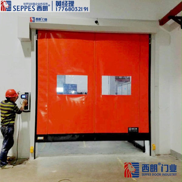 门帘采用PVC涂层耐磨基布,门的变频电机开启速度可达2.5m/s,普通快速门正常的开启速度一般是2.0m/s.该门的无油轨道允许门体最大抗风强度可达120km/h,运行寿命高达150万次。