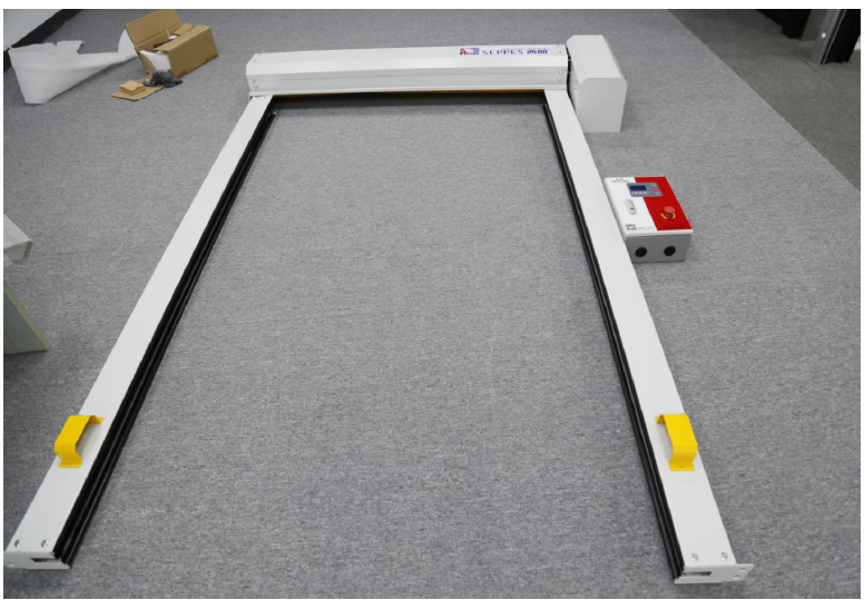 首先开箱检查配件是否齐全(每套门有5个件,其中包含控制箱1套、电机及编码器1套、门头包厢1套、轨道1套、光电及五金配件1套)