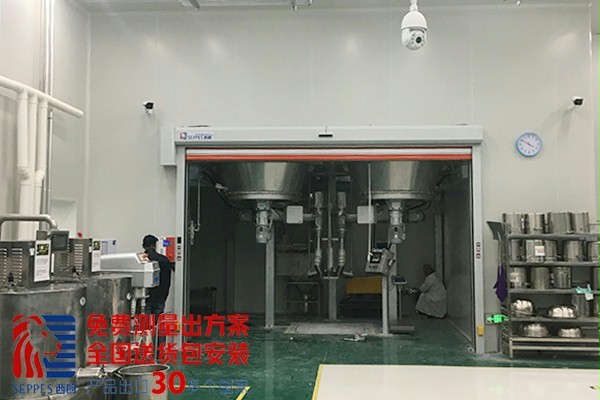 密闭车间自然要对车间的密封性有很高要求,一些细小的粉尘微粒都要严格把控好,像医药车间、无尘车间这样的场合就需要安装快速门来维持。快速门的密封性能很好,门帘底部与地面完整无缝贴合,防止灰尘、细小颗粒的进入;门帘左右两侧有毛刷装置,防止开门时杂物附带进室内,从而杜绝室外的杂质进入车间内部。