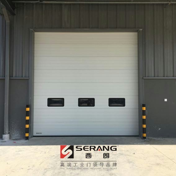 3.安全保护装置: 1在门的底部设有安全气囊,在门的关闭过程中遇碍物能自动反向运行到全开状态或者立即停止运行,保护人员安全。2在门的底部两端设有刀片式钢丝绳断裂保护器,当提升钢丝绳断裂,门体突然下降时,该装置能切入导轨,阻止门体迅速坠落;3红外光眼保护,设在门体的两侧,保护人员在门体底下的时候,不会下降。 4. 密封良好: 门洞顶部及二侧均设置三元乙丙橡胶密封条,在门体底部设置U型安全气囊及三元乙丙的密封翼,确保门体与建筑间和地面的良好密闭性。 5. 小门小窗:小门和小窗的安装更加方便人员的进出和日常的采光效果;小门和大门的开启是不可以同时进行,保护门体和人员的安全。