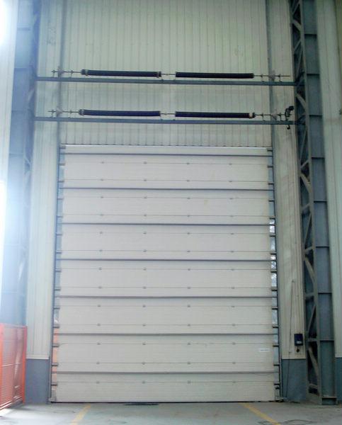 工业滑升门其设计目标是针对那些需要坚固的具有良好热绝缘性能以及能节省空间的工业房外墙用门的客户。工业滑升门在开启时向上滑动到天花板下,不占用屋内任何空间,使得门洞完全地敞开。高质量的夹芯式门板提供了极好的绝缘性能,成为最受广大用户欢迎的工业厂房外用门。
