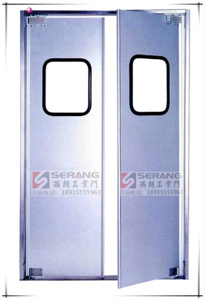 自由门门体采用高密度,防潮的实木芯材,门板为高强度的铝合金板,铝合金表面经过氧化处理,整体厚度为20mm。门体四边安装有特殊设计的铝合金型材,能降低门体四周的磨损,也可以加装密封条,较好地防止室内能量的流失。可视窗口为符合安全标准的透明有机玻璃制成。